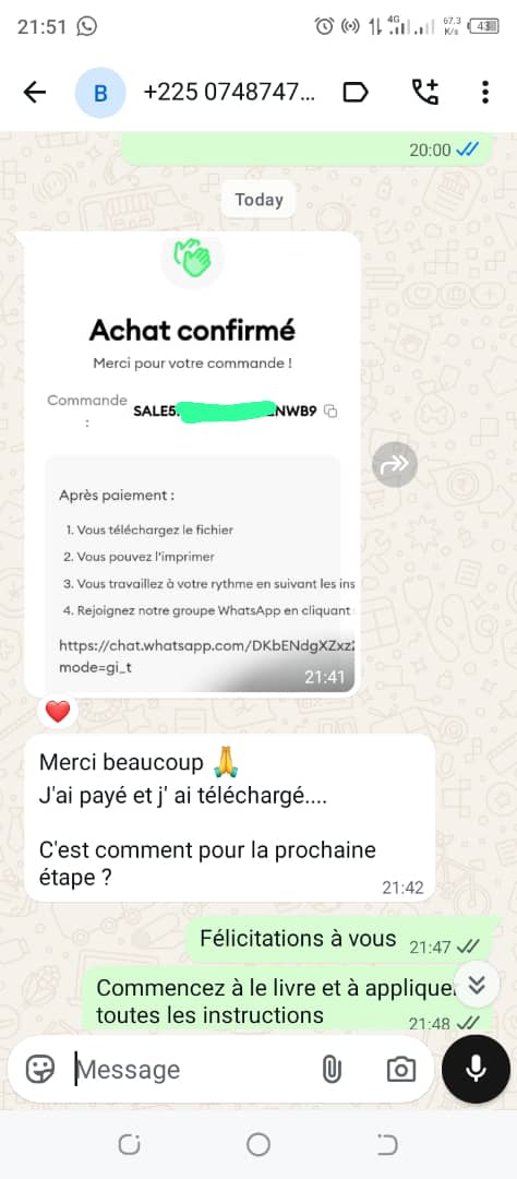 - Le paiement se fait soit directement sur le 0747366697 (Wave ou orange money) ou en cliquant sur le bouton d’achat dans » acheter le livre » ou cliquez ici